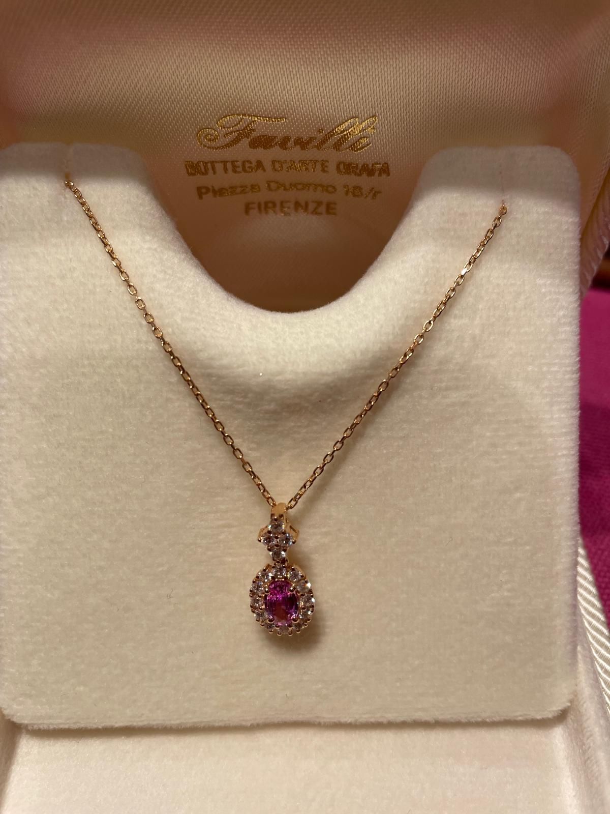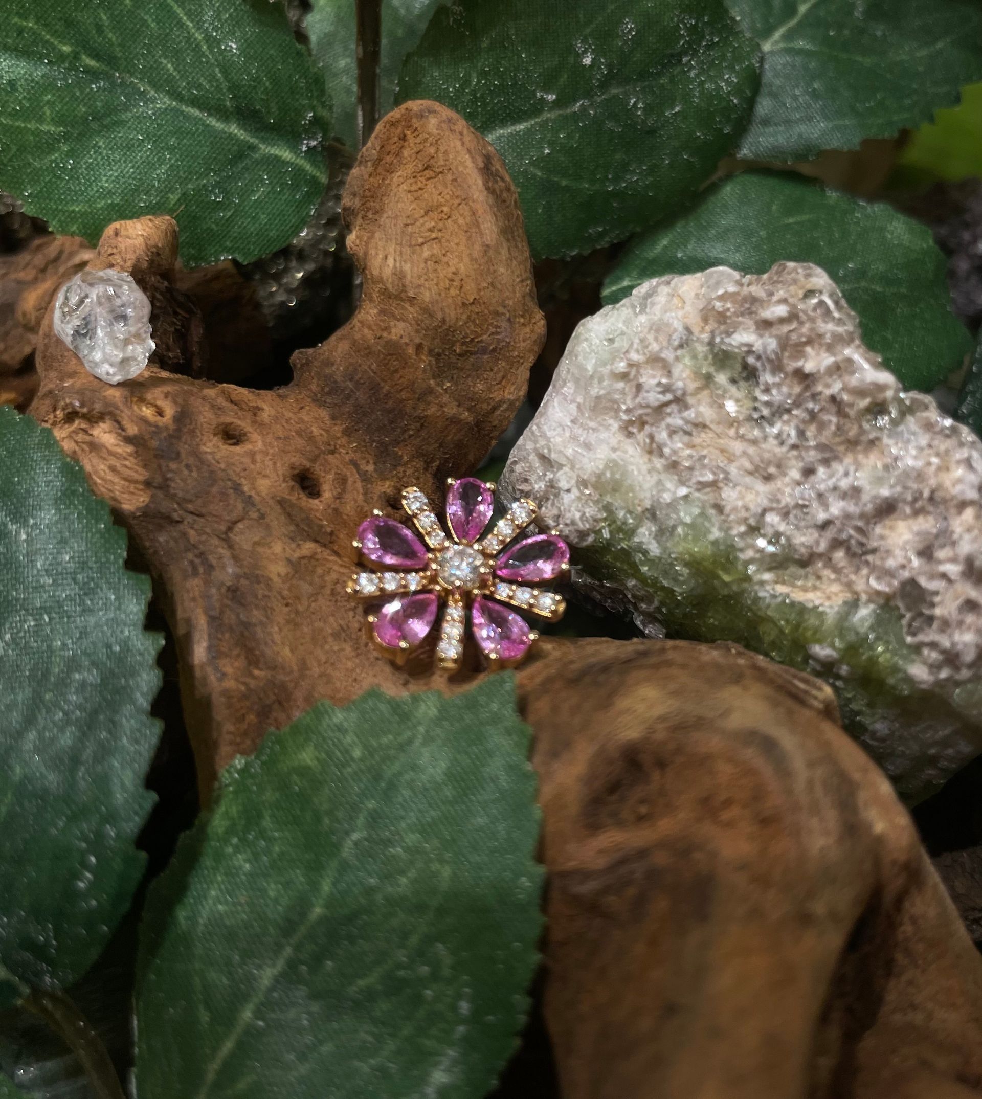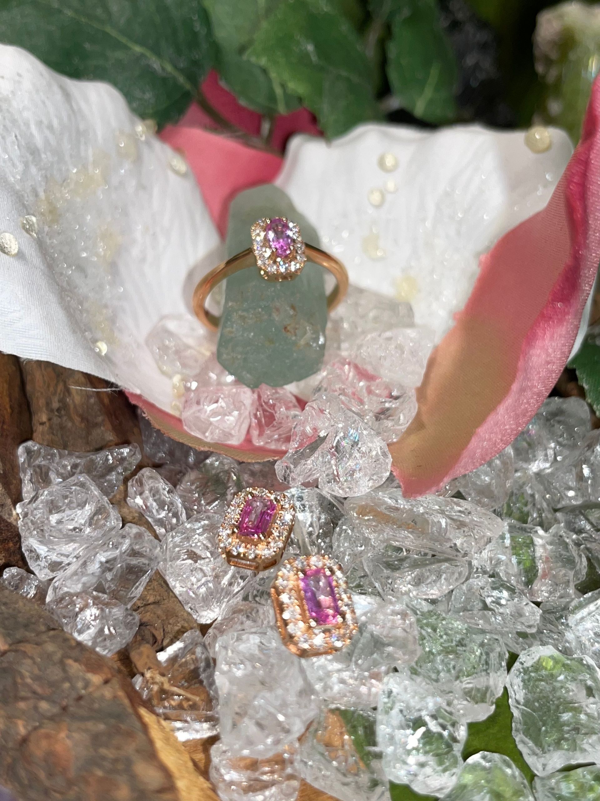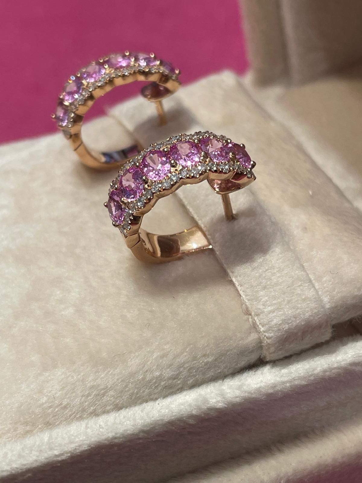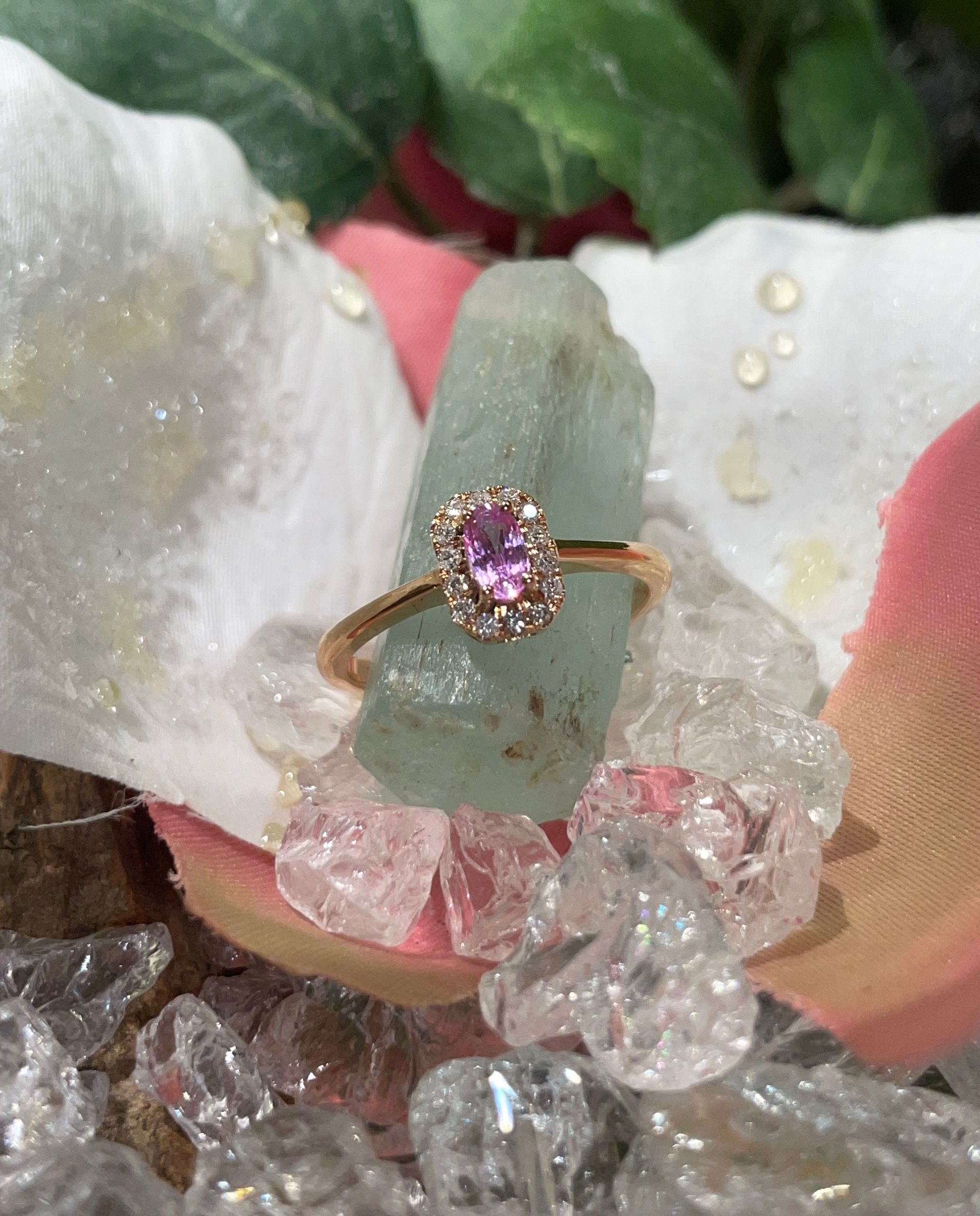Anello in oro con brillanti, zaffiri rosa e ametista