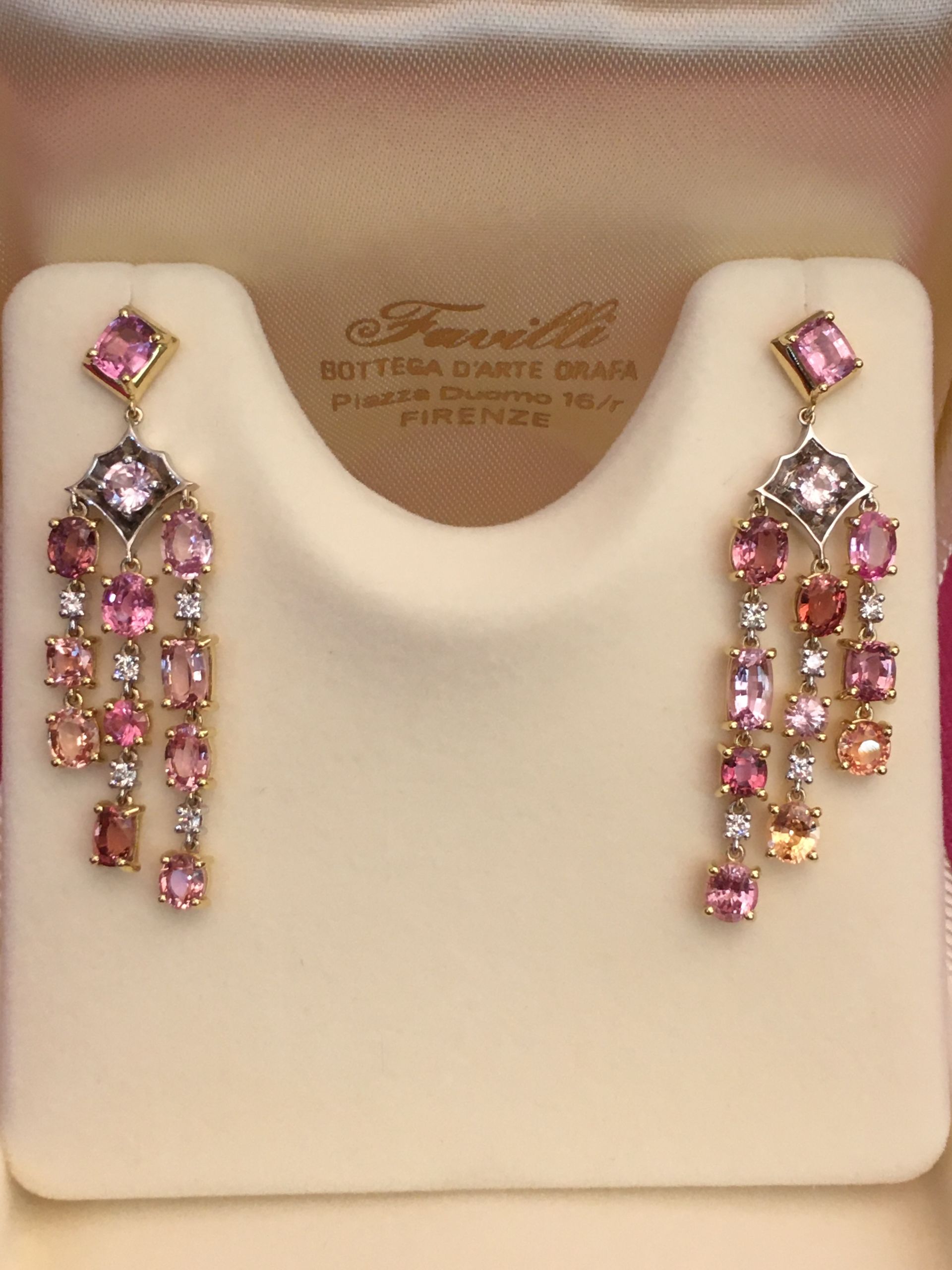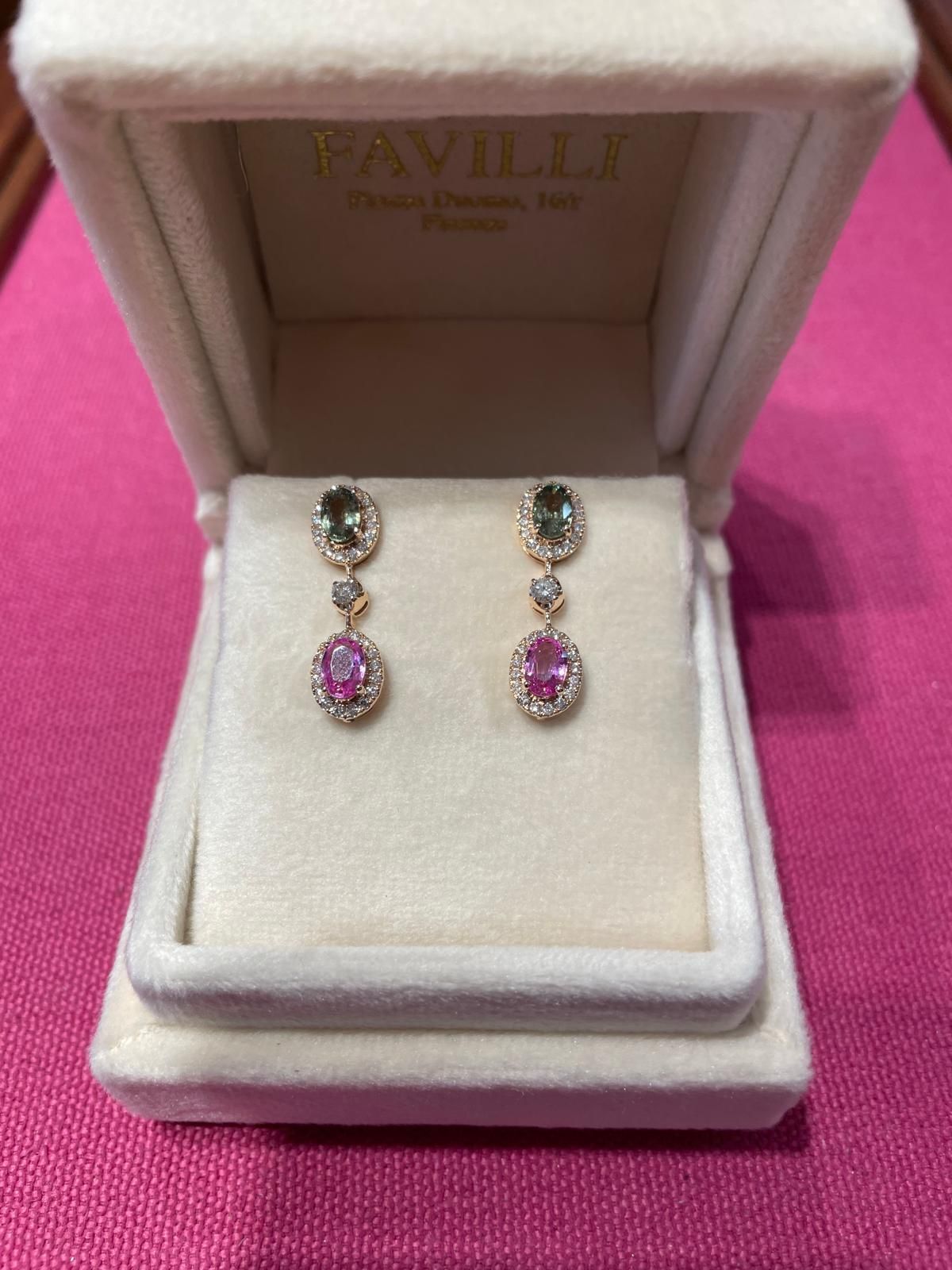 Orecchini pendenti in oro con pietre semipreziose e diamanti